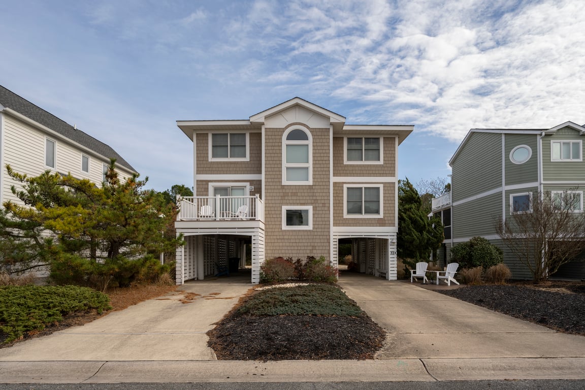 The lower level is the entry to the home with under house parking and space to store bikes and beach chairs. The second level features three bedrooms, one of which has a private bathroom, along with a full bathroom in the hall. This floor also has a family room area with a flat screen TV and access to the rear deck.